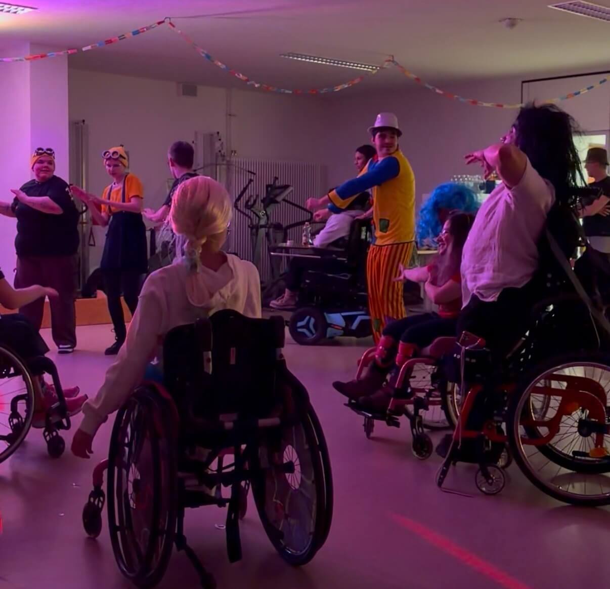 Einige Bewohnerinnen und Bewohner des Internats Mössingen kamen zu Besuch zur alljährlichen Faschingsdisco in Reutlingen.