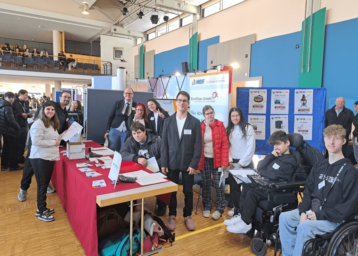 Die 19. Übungsfirmenmesse in Hechingen fand im Rahmen der kaufmännischen Ausbildung statt und zog rund 600 Teilnehmer an. Die Büroflitzer GmbH war gut vorbereitet und konnte dank der Unterstützung der Theodor-Heuss-Schule in Reutlingen viele erfolgreiche Geschäftsabschlüsse erzielen. Besonders in den ersten zwei Stunden war der Andrang am Stand groß. Neben dem Verkauf gab es eine Tombola mit kleinen Gewinnen sowie einen überarbeiteten Messekatalog 2026. Insgesamt waren etwa 16 Übungsfirmen vertreten.